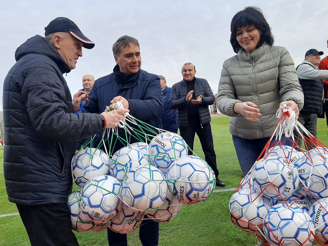 Команды Симферопольского района получили мячи, комплекты футбольной формы, флажки, сетки для ворот и ворота.